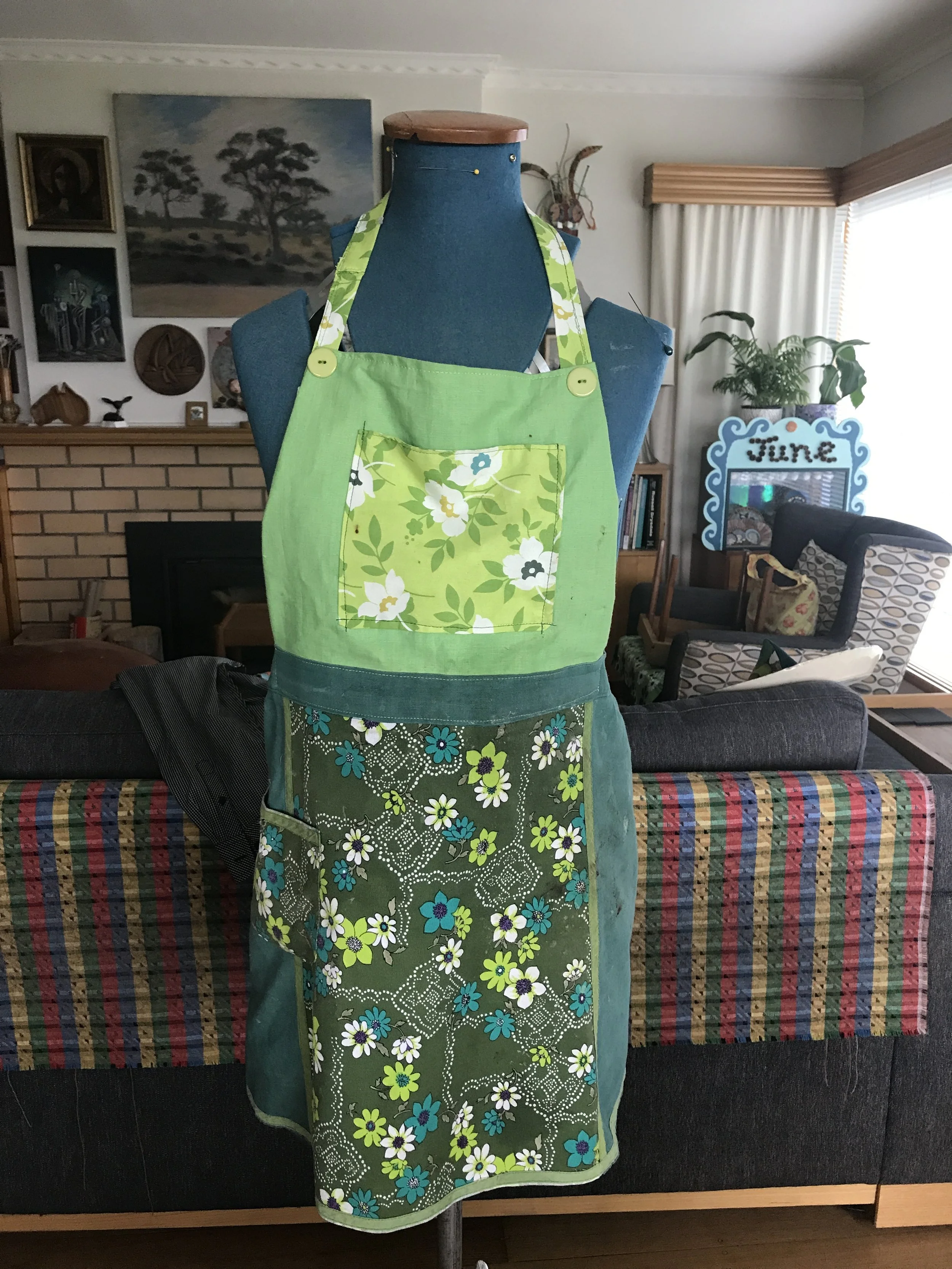 This piece was written in 2020, inspired somewhat by my own love of fabric and observations of other fanatics I witnessed pawing through the piles at op shops. There is something wonderful about the texture, scent, colours and patterns from earlier eras. Here's a recent apron I made from salvaged fabric.